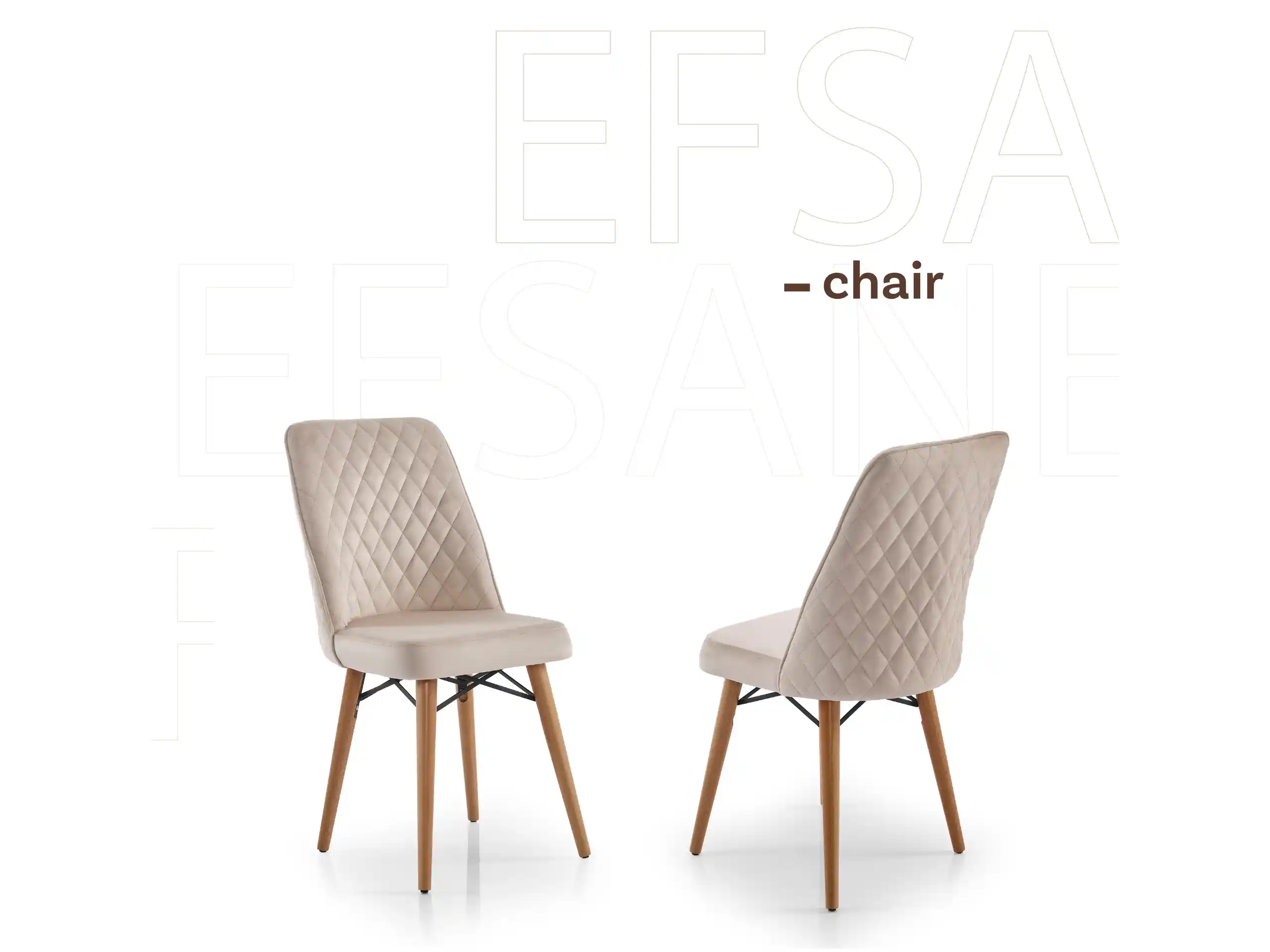 Efsane Dining Chair combines quilted cream upholstery with natural oak legs, offering comforting support and a space-saving, family-friendly design for lively dinners and gatherings.