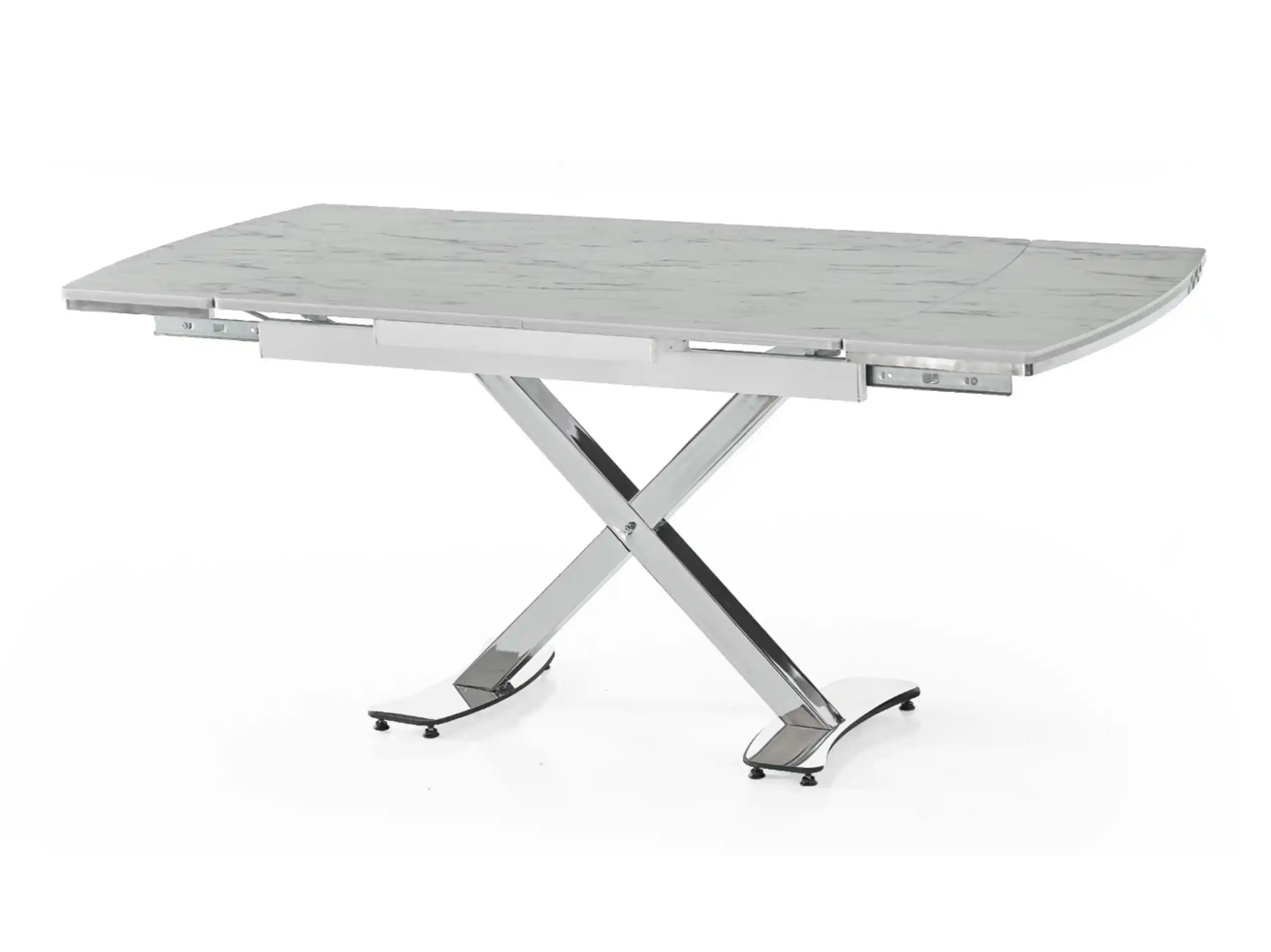 This extendable masterpiece features a durable marble-effect top that resists the chaos of daily life while exuding high-end glamour.