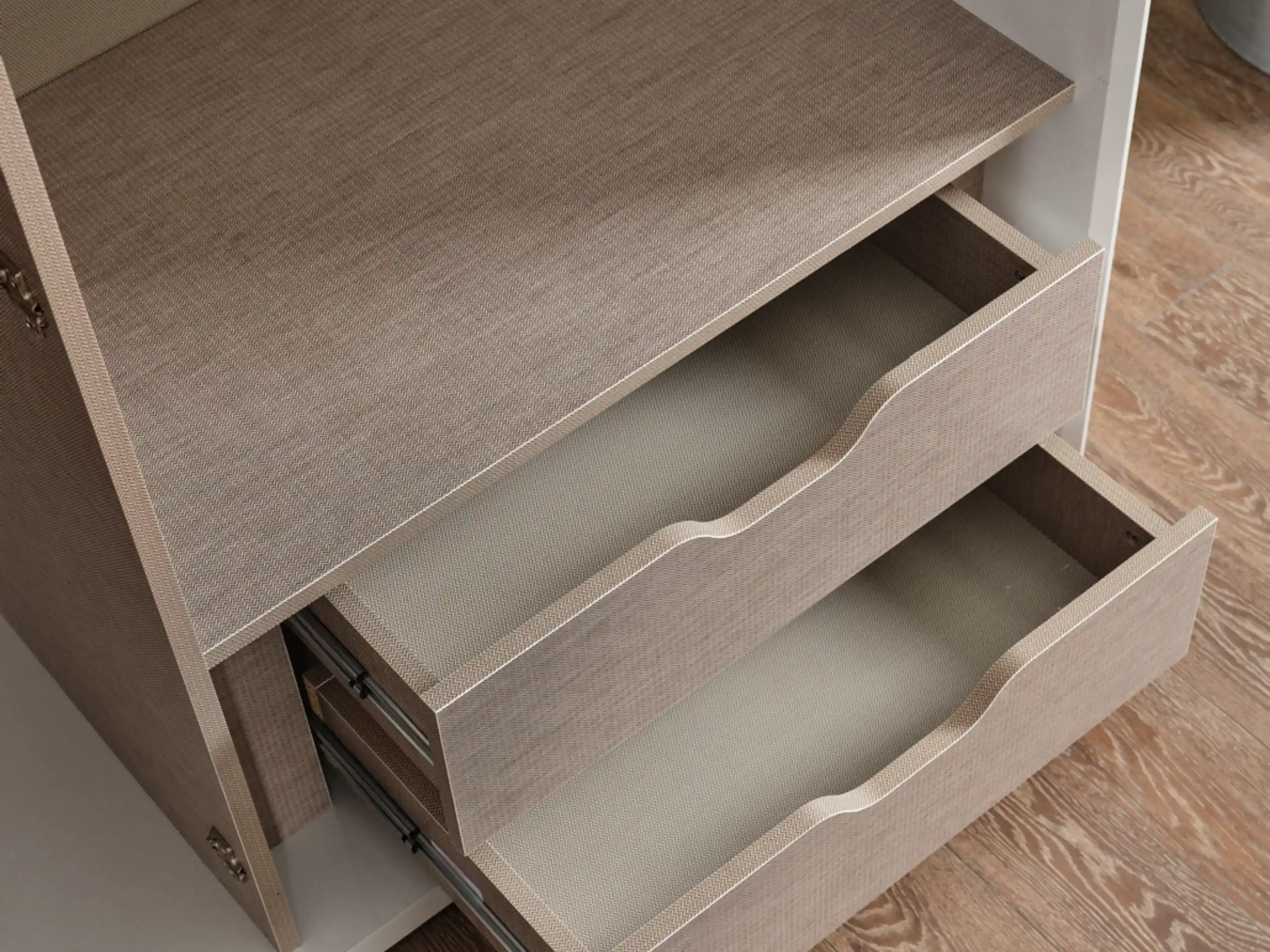 Multiple hanging rods, shelves, and drawers make it easy to keep everyone’s essentials organized, helping you maintain a clutter-free, calming retreat. Durable materials and easy-to-clean surfaces ensure it stands up to daily life with kids, all while adding a touch of elegance to your home.